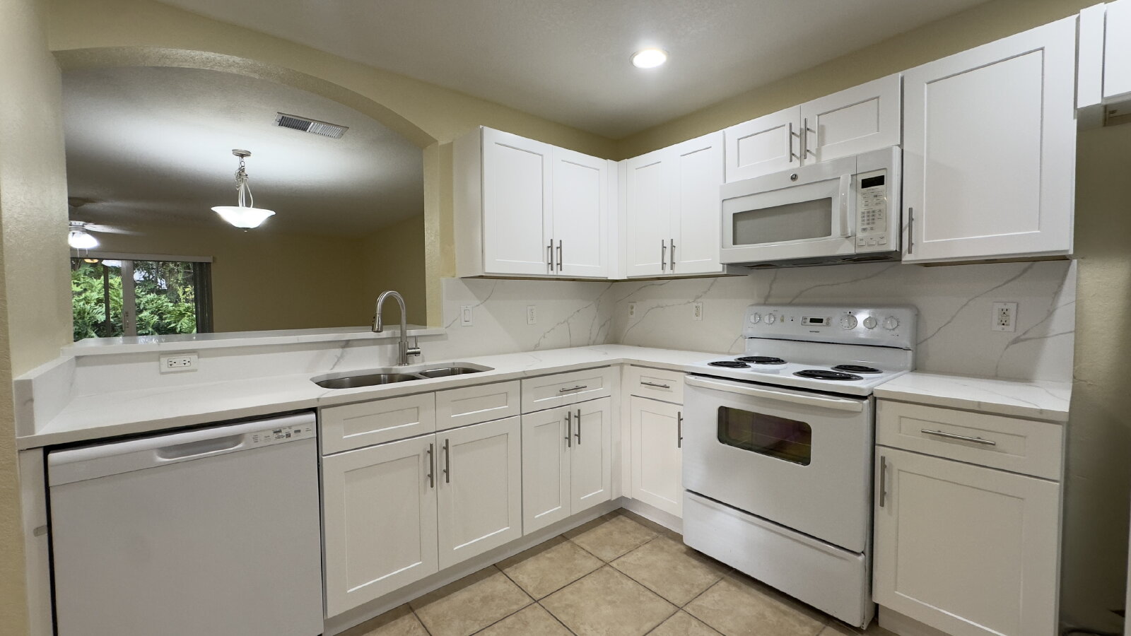 FEATURING NEW VINYL FLOORING ON SECOND FLOOR - FIRST FLOOR TILE. NEW BATHROOM VANITIES. NEW KITCHEN CABINETS WITH QUARTZ COUNTERTOPS. FRESHLY PAINTED INTERIOR. SCREENED PATIO. THE COMMUNITY OFFERS MANNED GATE POOL PLAYGROUND FITNESS CENTER TENNIS AND PICKLEBALL COURTS. PET FRIENDLY!